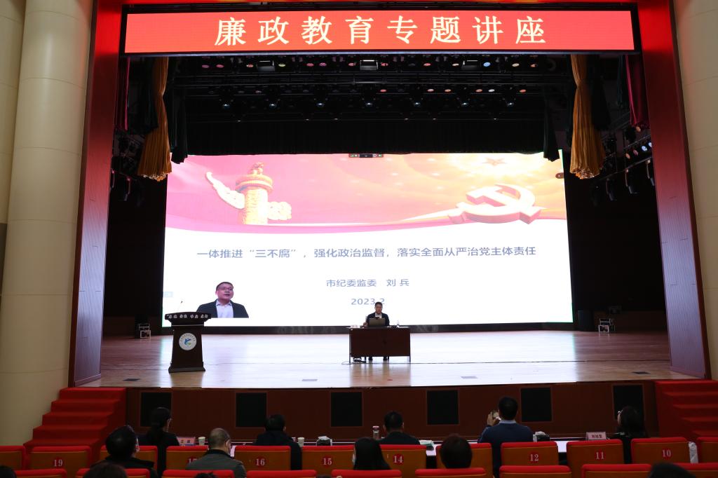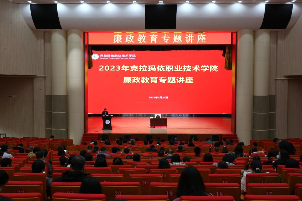 为进一步贯彻落实二十大精神,落实二十届中央纪委二次全会和自治区纪委十届三次全会任务部署,强化政治监督,加强学院作风建设,加强教职工廉洁从政、从教意识,为学院改革发展持续营造风清气正的政治生态和良好发展环境,2月22日下午学院特邀请市纪委常委、监委委员刘兵为全体教职员工开展廉政教育专题讲座。学院全体领导及克、独两校区的全体教职工参加了本次讲座。